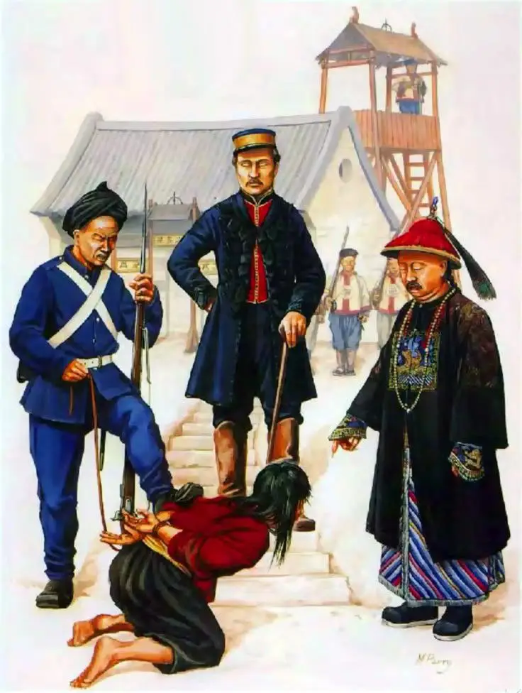 ¡Pero no funcionó! Aunque todos los soldados entrenados por oficiales rusos demostraron buena puntería, debido a una serie de intrigas políticas, el entrenamiento se interrumpió en febrero de 1862, los soldados y oficiales fueron llamados de nuevo, y los nuevos instructores fueron alemanes, británicos y franceses. Entonces, ¿qué eran exactamente estas "tropas entrenadas"? Empecemos por el hecho de que eran mercenarios. Mientras que el servicio en las antiguas "tropas de la bandera" era hereditario, el nuevo ejército chino reclutaba voluntarios. El servicio solía durar seis años, pero los contratos a menudo se firmaban por 10 a 20 años.
